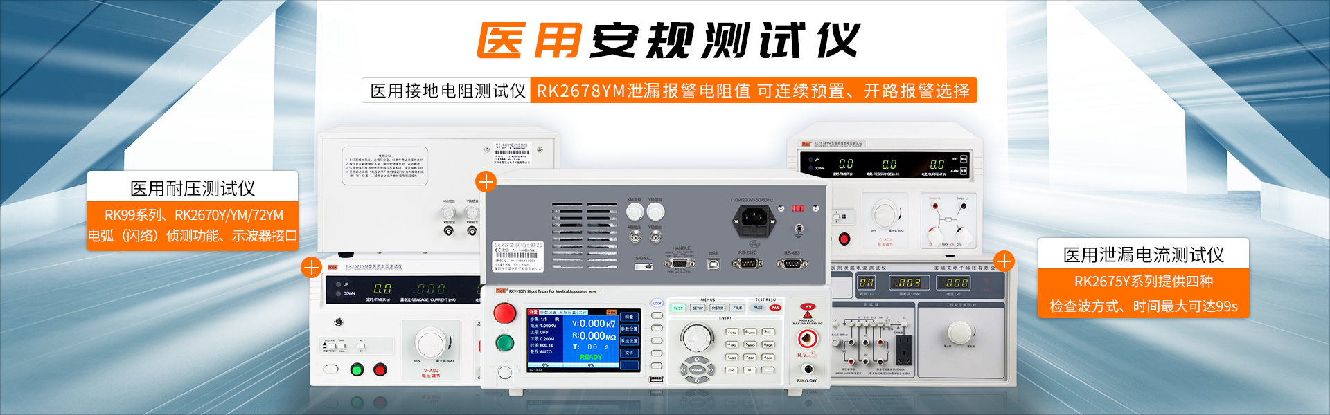 美瑞克堅持自主創新,現已研發并生產了安規、醫用安規、超高壓耐壓儀、數字高